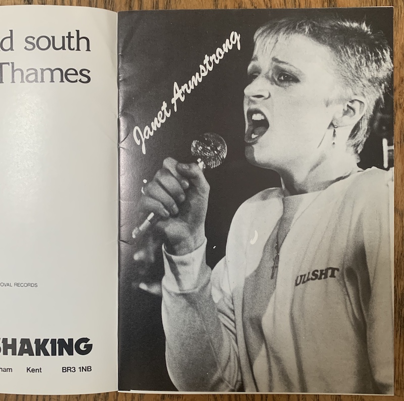 This all brings us to one of my favorite comps from this era: the “East of Croydon” LP from south London, 1981. I think the closest anyone on this comp came to any sort of fame is Janet Armstrong who, aside from providing the first track on Side A here, sung backup vocals on David Bowie’s “Absolute Beginners”. Her offering sees Gang of Four guitars riding a dub-inflected Siouxie & the Banshees-esque track to start off the album. Janet’s brother Keith Armstrong plays on no less than 3 of the tracks on the record, all with different bands, including the band he’s probably best known for: the dark and moody post-punk unit Normil Hawaiians. The most primitive track on here, “Fly On the Wall” from Spoon Fazer, sounds like a classic one-man DIY synth project recorded by someone with a drum machine that still has a price tag hanging off it. My favorite track is by Greenfield Leisure who contribute what almost sounds like a radio jingle for their own band called “Leisure” which would 100% fit in on the “C86” comp or alongside bands like Mighty Mighty, Big Flame and the the bass-slappy pop of the Ron Johnson roster. The liner notes of the LP are in the form of a postcard-sized printed booklet which, like all good 90’s emo hardcore compilations, gives a page to each band to provide their own art/lyrics/liner notes/contact info/etc.